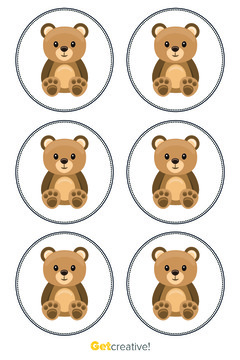 Przypinki z wizerunkiem misia do zabaw np. ruchowych.