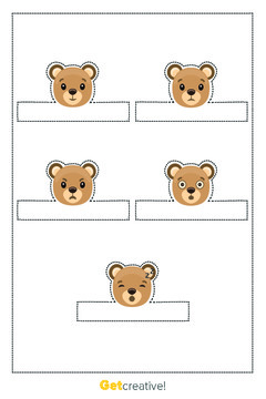 Papierowe pacynki paluszkowe przedstawiają emocje misia.