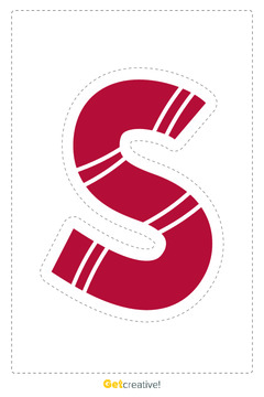 Materiał zawiera napis „Santa” każda litera znajduje się na jednej stronie A4.