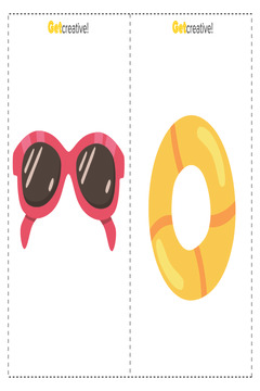 Flashcards przedstawiają przedmioty, które kojarzą się z wakacjami.