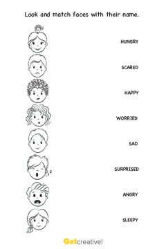 Zadanie polega na połączeniu emocji z ich nazwami.