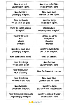 Materiał zawiera karteczki z zadaniami, które mają na celu powtórkę słownictwa zwią...
