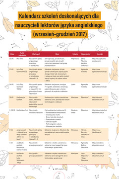 Kalendarz szkoleń doskonalących dla nauczycieli i lektorów