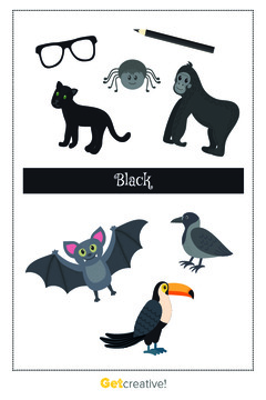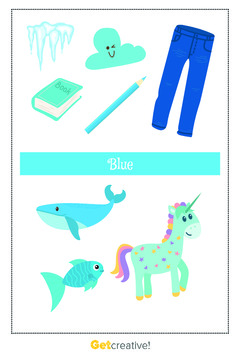 Zestaw zawiera karty obrazkowe z różnymi przedmiotami w różnych kolorach (z na...