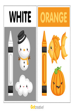 Zestaw zawiera karty obrazkowe w różnych kolorach (z nazwami kolorów).