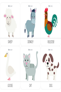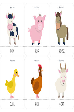 Karty obrazkowe pomagają utrwalić słownictwo z zakresu farm animals.