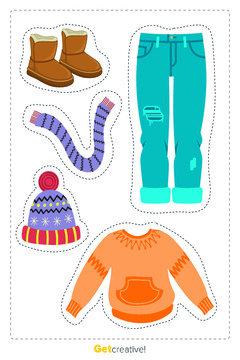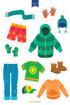 Materiał zawiera kolorowe grafiki do wycięcia - przedstawiające zimowe i letnie ubrania. Przydadz...