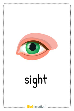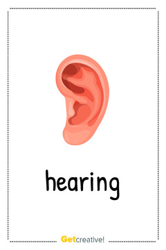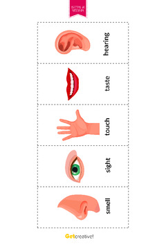 Zestaw zawiera karty obrazkowe przedstawiające zmysły.