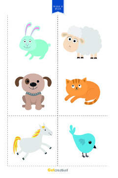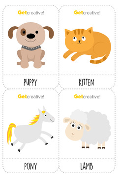 Karty obrazkowe przedstawiają zwierzęta-bohaterów książeczki My Little World Egg.