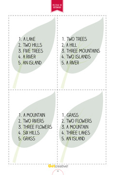 Cztery karty z angielskimi nazwami elementów krajobrazu. Przydadzą się do zabawy z aplikac...