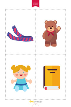 Karty z prezentami służące do prowadzenia aktywności „What’s in the box, Mr Fox?”
