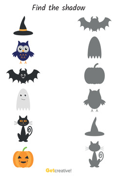Karta pracy z wizerunkami halloweenowych postaci, gdzie trzeba dopasować postać do kształtu jej c...