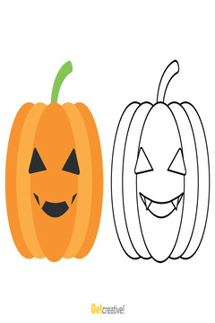 Kolorowanka z wizerunkiem dyni z Halloweenową buzią.