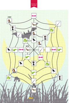 Plansza do gry Spiderweb game. Zbierzcie wszystkie przedmioty, które zgubiła zakręcona cza...