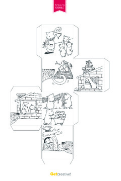 Gotowa do złożenia i wycięcia kostka do gry przedstawiająca historię Trzy Świnki.