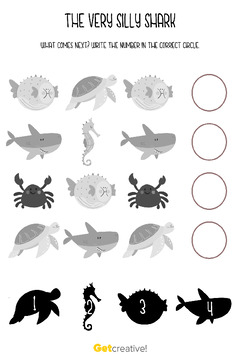 Zadanie polega na odnalezieniu zwierząt morskich i wpisaniu odpowiedniej cyfry w puste pole.