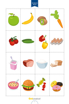 Karty obrazkowe przedstawiające zdrowe i niezdrowe jedzenie