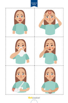 Karty obrazkowe do powtórzenia nazw chorób. Przydadzą się podczas zajęć „Time...