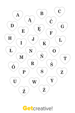 Serca z literkami do wykorzystania podczas walentynkowych zabaw