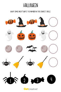 Zadanie polega na odnalezieniu halloweenowych obrazków i wpisaniu odpowiedniej cyfry w pus...