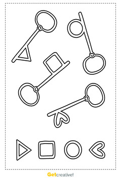Plik zawiera szablon kluczy zakończone kształtami. Przydadzą się podczas powtórki nazw kol...