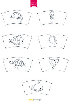 Szablon nakładek na kubki z ilustracjami zwierząt morskich do zabawy z kubkami, szczególni...