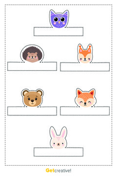 Materiał zawiera maski leśnych zwierząt: sowy, jeża, wiewiórki, zająca, lisa i teddy bear.
