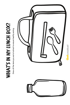 Karta pracy to rysunek lunch box.Uczniowie mają zaprojektować zawartość swojego pudełka na śniada...