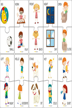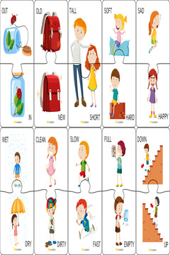 Gra puzzle służy przyswojeniu i utrwaleniu słownictwa z zakresu przeciwieństw