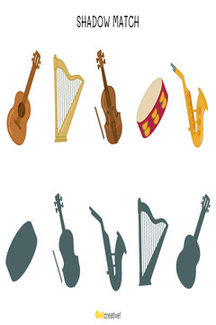 Karta pracy to dopasowywanie cienia do odpowiedniego instrumentu.
