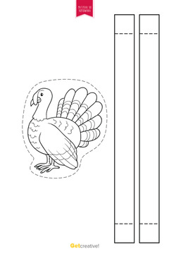 Szablon opaski z indykiem jest pomocą dydaktyczną podczas zajęć o Thanksgiving oraz o zwierzętach.