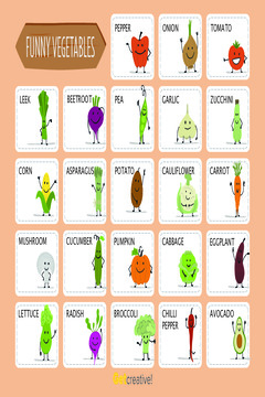 Flascards przedstawiają warzywa.Flascards można wykorzystać w rozmowie z uczniami o jesiennych zb...