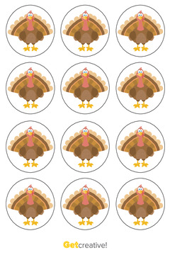 Materiał zawiera przypinki przedstawiające indyka, można przyczepić je np. do bluzki.