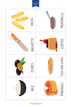 Karty obrazkowe służą do utrwalenia słownictwa oraz do gry w skojarzenia potrawy z danym krajem. ...